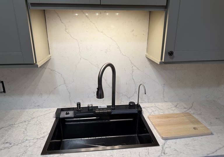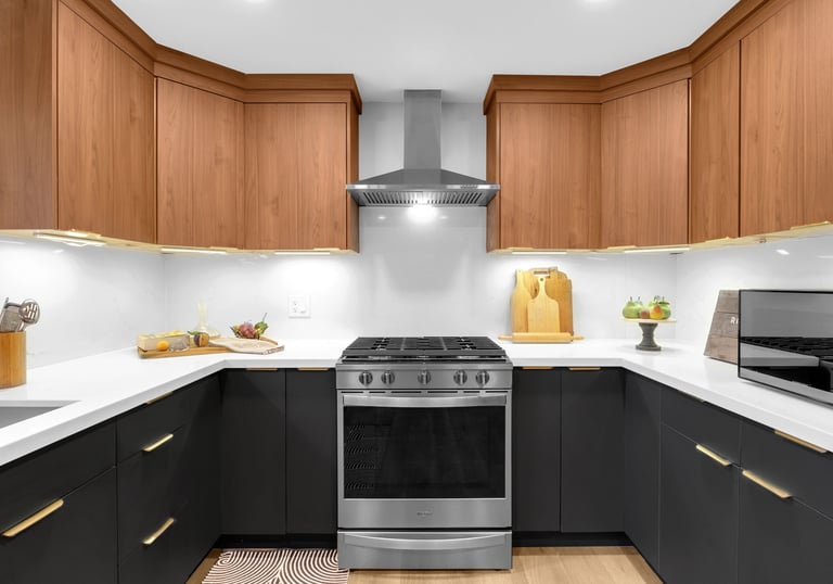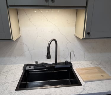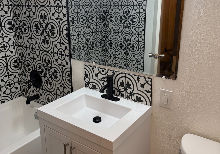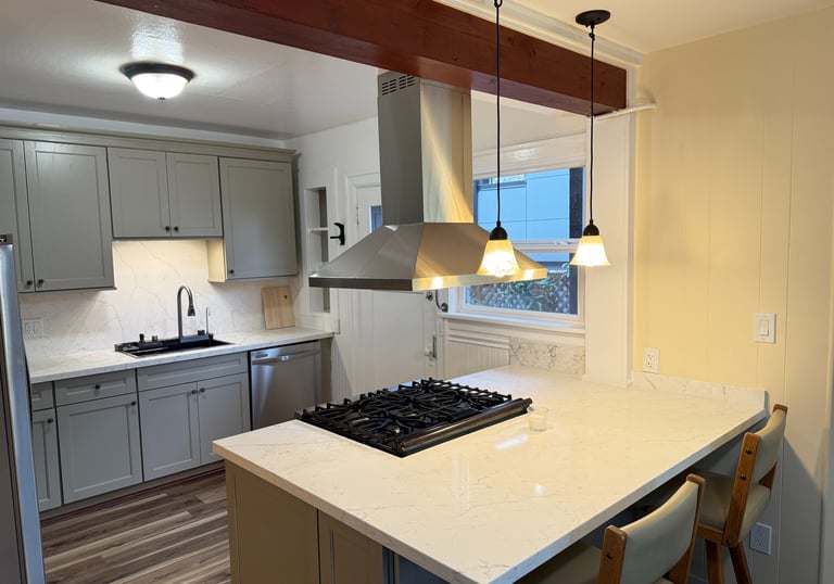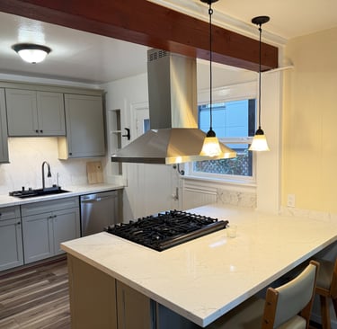 Our customer wanted to add some modern amenities to this Fremont rental. We brought this kitchen to code, upgraded countertops, backsplash, exhaust fans, electrical, water lines, and flooring.