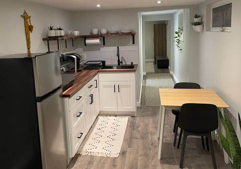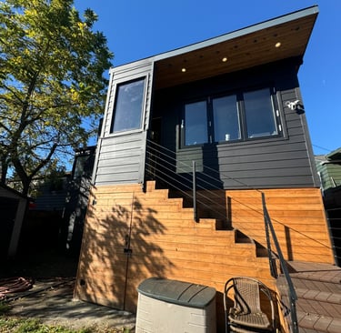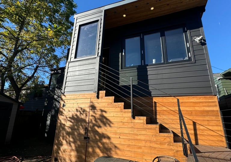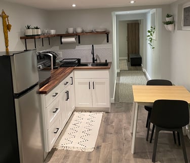 Our customer wanted to create a multi-generational home. There wasn't much space to make something happen. We designed converted a 1-space attached garage and made a 300 square foot studio with a kitchenette, living room, bathroom, and bedroom.
